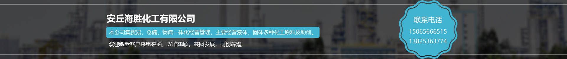 安丘市海勝化工有限公司成立于 2011 年 1 月 4 日,位于山東省濰坊市安丘市石堆鎮(zhèn)董家下坡村,占地面積20000平方米,注冊資本壹仟萬元正。現(xiàn)有職工20人,專職安全生產(chǎn)管理人員1人,安全專家1人。公司制定了較完善的安全生產(chǎn)責(zé)任制度、安全管理制度、崗位安全操作規(guī)程,編制了事故應(yīng)急救援預(yù)案并定期組織演練。